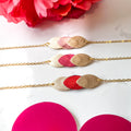 Ajoutez une touche de poésie à votre poignet avec ce bracelet en cuir doré et coloré, entièrement façonné à la main dans notre atelier en France. Inspiré par la nature et les couleurs du printemps, chaque pièce associe des éclats pailletés à des teintes douces et vibrantes pour sublimer vos tenues avec élégance. Le cuir recyclé est délicatement découpé et assemblé sur une chaîne dorée en acier inoxydable, garantissant confort et durabilité au quotidien.
