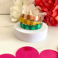 Ajoutez une touche de poésie à votre poignet avec ce bracelet en cuir coloré, entièrement façonné à la main dans notre atelier en France. Inspiré par la nature et les couleurs du printemps, chaque pièce associe des éclats pailletés à des teintes douces et vibrantes pour sublimer vos tenues avec élégance. Le cuir est délicatement découpé et assemblé sur une chaîne dorée en acier inoxydable, garantissant confort et durabilité au quotidien.